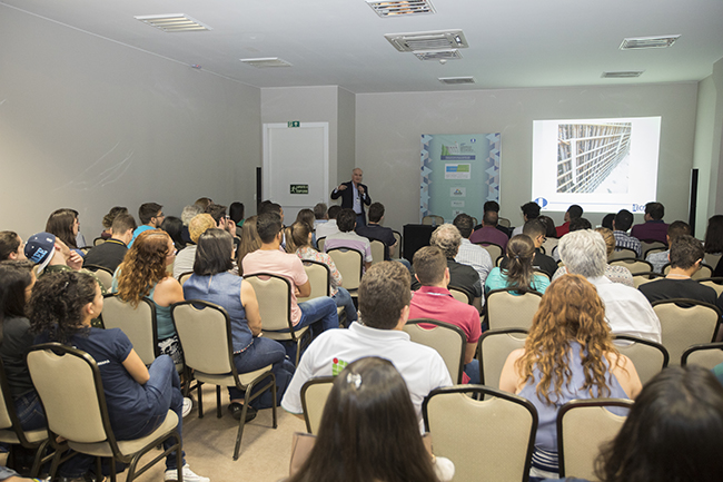 O Seminário “Boas Práticas na Execução de Estruturas de Concreto”, realizado conjuntamente pelo IBRACON e Sinduscon-SP (Sindicato da Indústria da Construção Civil de São Paulo) foi coordenado pelo vice-presidente do Comitê Tecnologia e Qualidade do Sindicato, Eng. Jorge Batlouni Neto, que abordou em sua palestra como assegurar a produtividade no canteiro de obras. Ercio Thomaz (IPT) procurou mostrar em sua apresentação os cuidados a serem tomados e os erros a serem evitados na execução dessas estruturas. Já, a Eng. Luana Scheifer (Engemix/Votorantim) apresentou os estudos comparativos e ensaios realizados com o concreto com adição de cristalizante para aplicação em estrutura sujeitas à pressão hidrostática, como cortinas de contenção de subsolos abaixo do lençol freático. Por sua vez, o Eng. Carlos Roberto Gomes do Amaral (Centro Tecnológico da Marinha em São Paulo) apresentou os estudos de traços dos concretos usados nas fundações e algumas edificações do Labgene (Laboratório de Geração de Energia Nucleoelétrica), em Aramar.