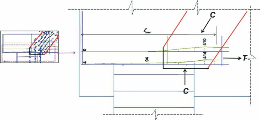 Figura 15 – Comprimento de ancoragem e tensões atuantes (em MPa) nos tirantes na região