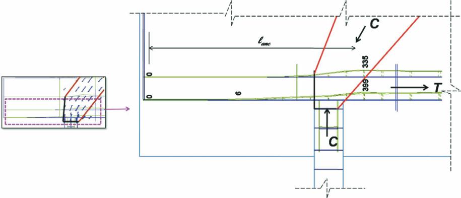 Figura 19 – Comprimento de ancoragem e tensões atuantes (em MPa) nos tirantes